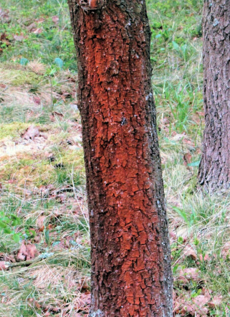 Dotaz čtenáře: „Až teď v zimním období jsem si všiml, že některé kmeny mých starších jabloní jsou zbarveny výrazně dočervena. Můžete mi sdělit, co to způsobilo a jak moc to stromům škodí? Mám se bát o úrodu?“