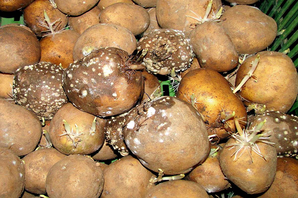 Aby brambory zůstaly zdravé, pravidelně vybíráme a odstraňujeme poškozené a nahnilé hlízy. Mezi nejčastější choroby, které mohou poškodit brambory při skladování, patří měkká bakteriální hniloba, plíseň bramborová a fusariová hniloba. K poškození brambor může dojít také v důsledku hlodavců (myší, hrabošů), kteří mohou hlízy poškodit a zhoršit jejich skladovatelnost (zvýšený výskyt nekróz, barevné změny dužniny).