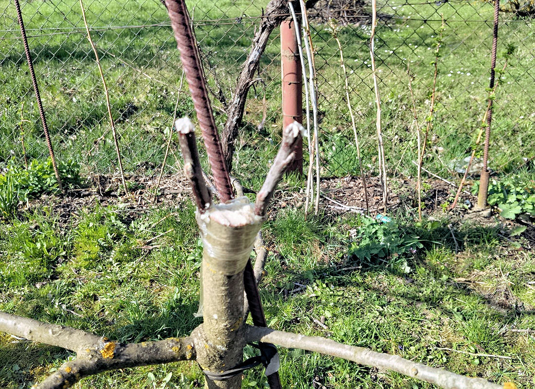 V březnu a dubnu dokáže slunce přes den pletiva pořádně rozehřát, zatímco v noci ještě mrzne. Tento tepelný stres může způsobit, že roub vyschne dřív, než se stačí napojit na proudící mízu podnože.