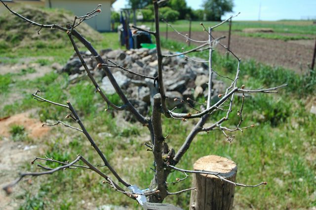 Dobrý den, když odloupnete pupen, je uvnitř ještě zelený? Nebo zkuste nehtem lehce odstranit nejsvrchnější vrstvu borky. Pokud je pod ní vetvička ještě zelená, dejte ji šanci, je možné že se ještě probere. Pokud zelená nebude nebo se nezačne v nejbližších dnes probírat, doporučuji ji do školky vrátit (jako reklamaci) a vyměnit za jinou, na které v této době již poznáte, že je živá. Letošní tuhá zima poničila hodně kontejnerovaných sazenic, kterým promrzly kořeny. Zbytky živých kořenů pak nejsou často schopny korunu "uživit". Mohu vědět, proč máte kmínek takto obalený? |