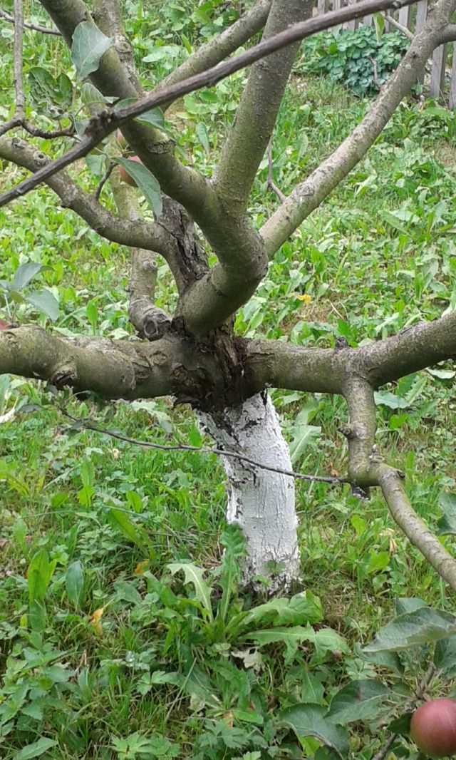Skupina korových nekróz, houbovka, tzv. "rakovina". Odstranit suché větve i suchou kůru od od ran na částech živých, zatřít latexem a Kuprikolem nebo nejprve ošetřit Kuprikolem a pak zatřít štěp. voskem či balzámem. Po vegetaci desinfikovat (pořádně postříkat) celý sad Kuprikolem nebo Šampionem. |