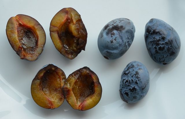 Chtěl bych se ujistit, jestli naše švestka má šarku. Plody jsou zkrabacené, u pecky zahnědlé, hodně opadávají, nedobré. Připojený obrázek: