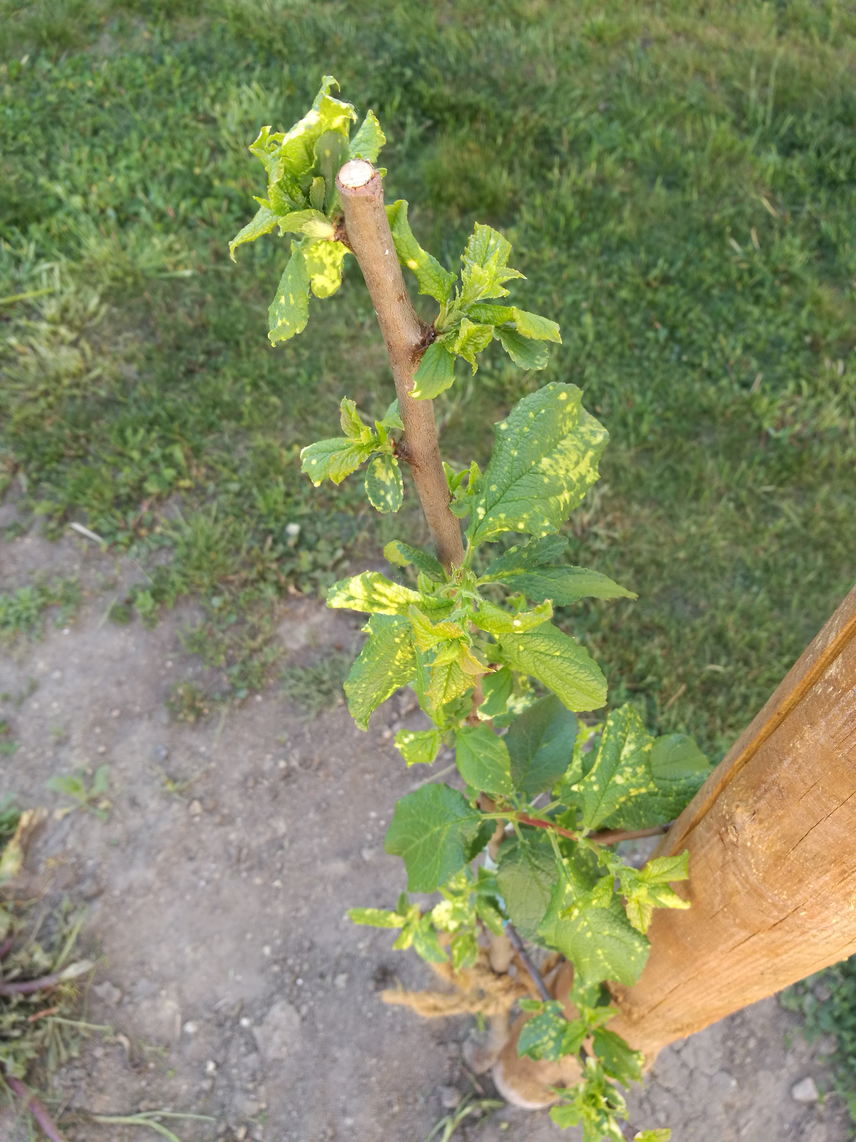 O jakou jde odrůdu? Tohle s dost velkou pravděpodobností šarka není. Snad jedině kdyby to byla odrůda s hypersensitivitou a tohle by byla reakce na sání hmyzem šarku přenášející. Ty listy jsou divně pokroucené, jako poškozené mrazem, nebo napadené roztoči, mšicemi. U šarky ty skvrny na listech bývají nenápadnější, projevují se až na plně vyvinutých listech. |