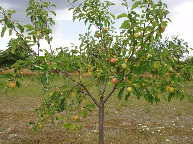 Na jaře jsem pohnojil speciálním hnojivem na ovocné stromy (do mísy u kmínku). Později už ne, nevím totiž jak na to, protože letos mulčuji posekanou travou a pozemek je navíc zatravněný. Takže se mi zdá, že by se hnojivo přes trávu ke kořenům nedostalo a jen bych podporoval růst trávy. |