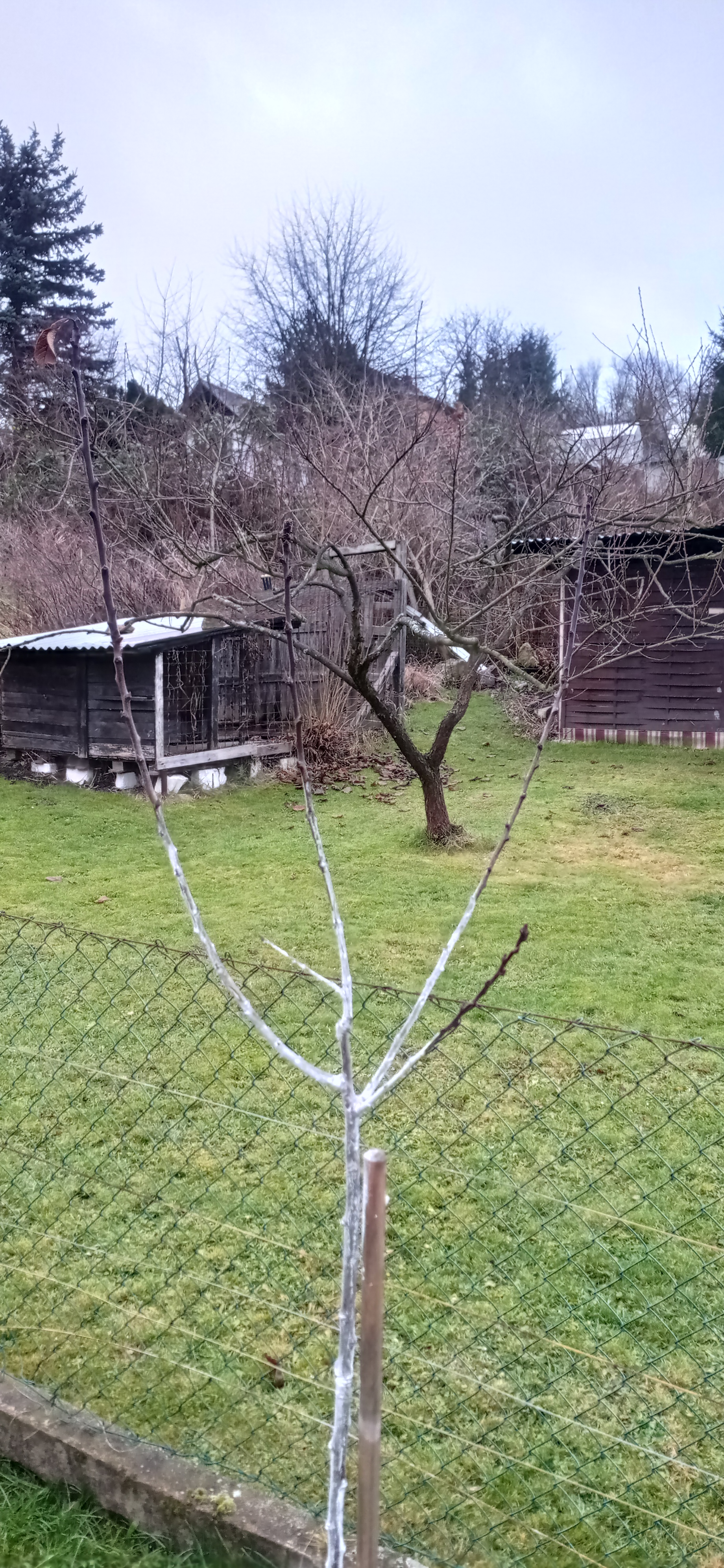 Co se řezu týká, rady jsou dobré, ale zásadní otázka je, proč jste ten stromek zasadil asi tak 40cm od sousedního pozemku? Ikdyž máte prima sousedy, tohle se nedělá. Jak ten stromek chcete stříhat v dalších letech, a sklízet? Sousedi za dobrou švestku budou třeba rádi, ale pro vás jakákoliv péče znamená, že se dostanete k polovině stromku nebo do sousedů. |
