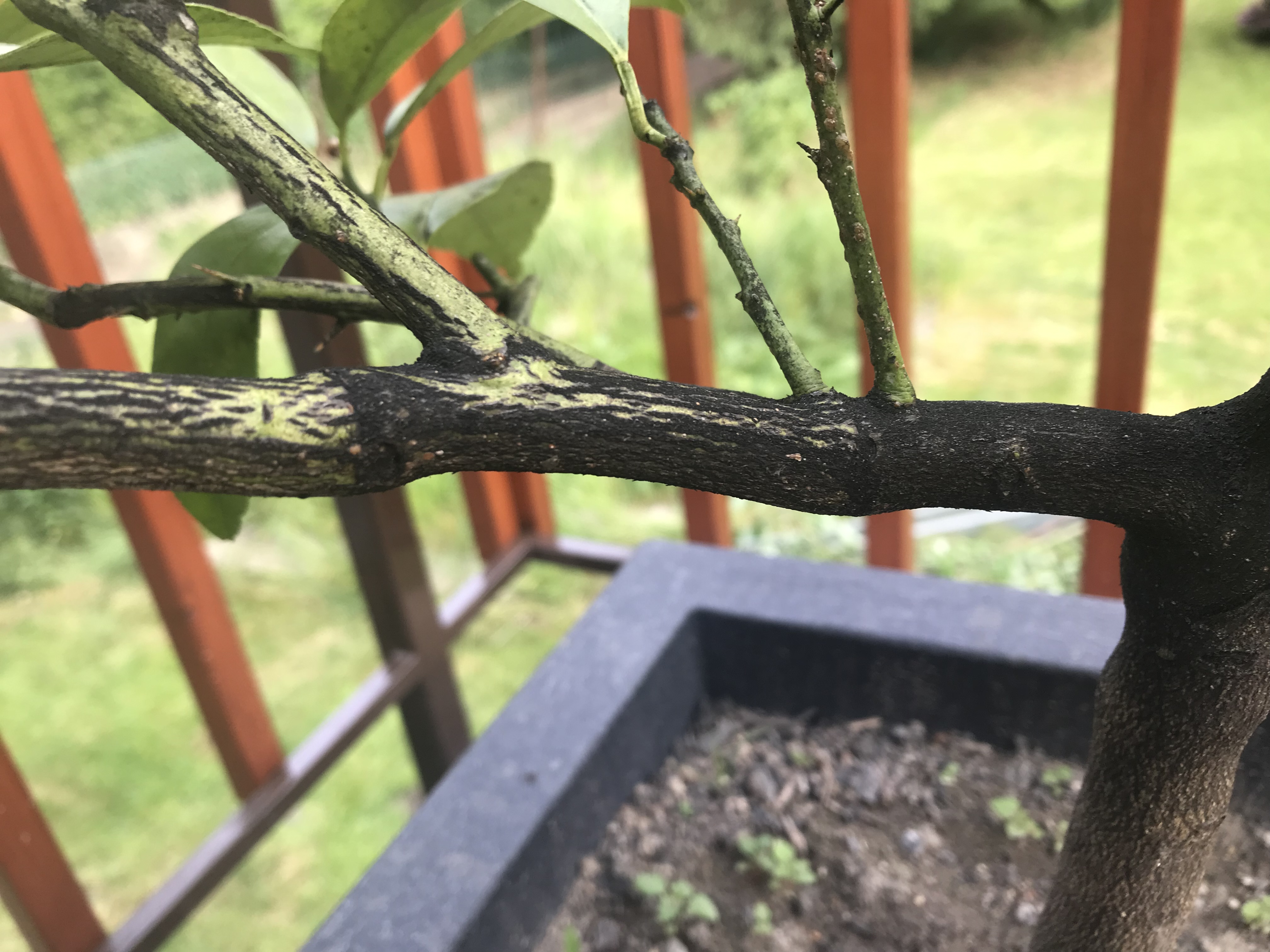Nejspíš puklice-ty malé hnědé jakoby želvičky. To černé -houby černě, které se realizují na lepkavých výměšcích těch breberek. Lze odstranit např.hadérkou namočenou v alpě či ovocné pálence-stírat mírným tlakem, poté osprchovat vlahou vodou. |