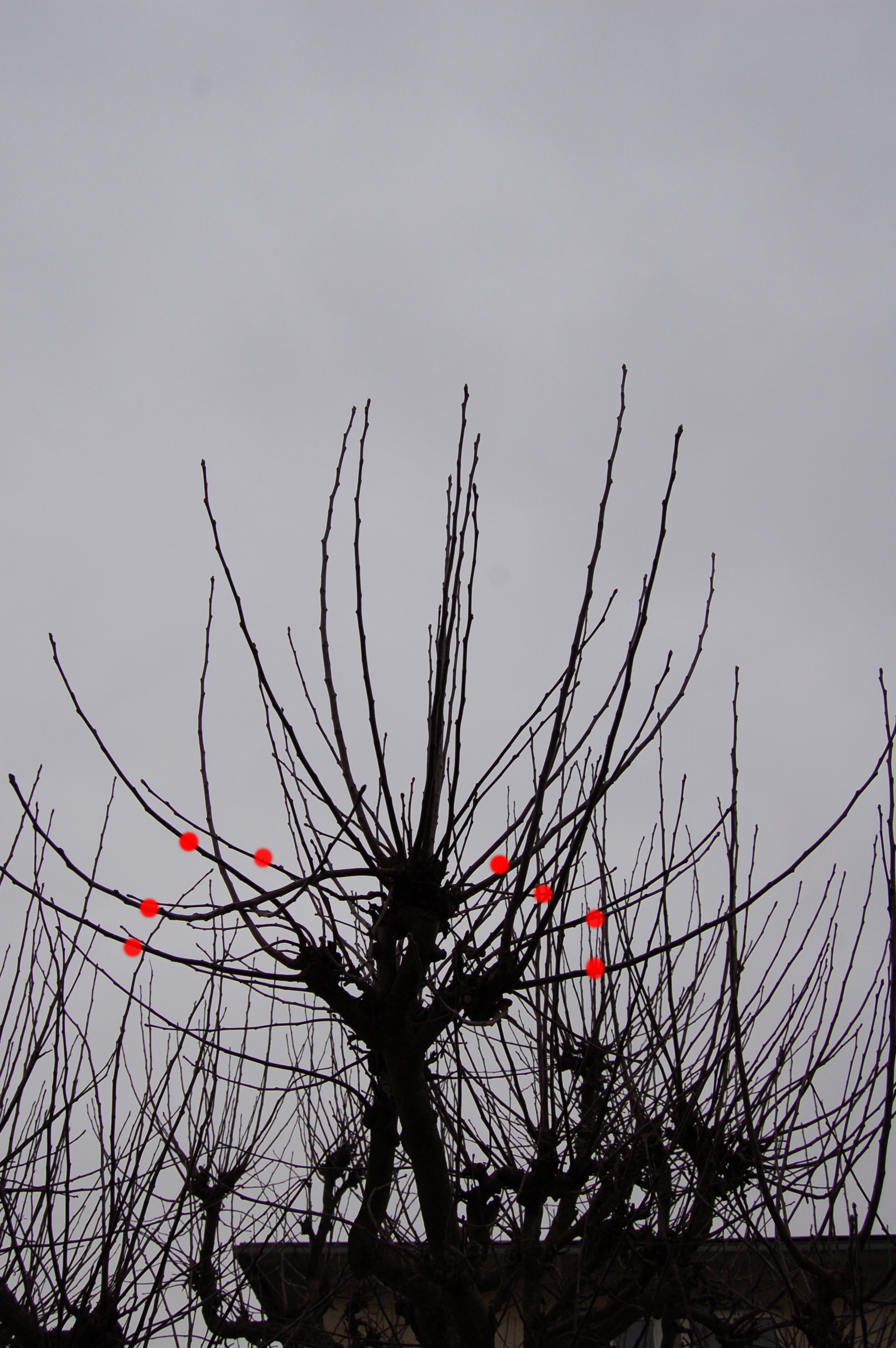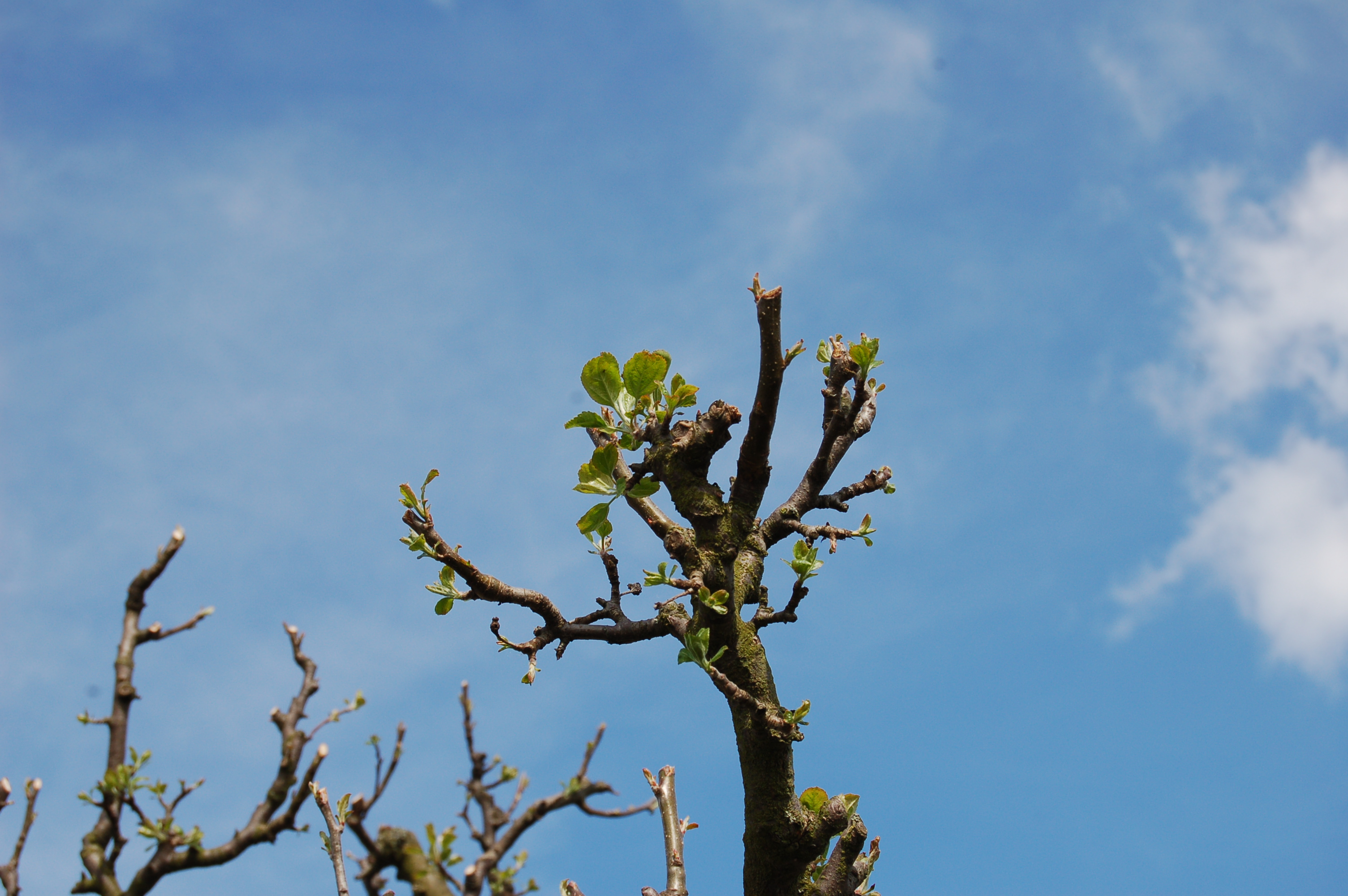 V těch jednotlivých \"kyticích\" jsou letorosty přímé, ale i takové, které jsou na bázi spíše do stran. Ty využijte. Nechte jeden z těch přímých, zkraťte ho tak na 7-9 oček a ty šikmé také zakraťte. Buď na očko ven z koruny, nebo počítejte ještě s řezem za vegetace, řezem na převod. Ostatní kolmo stojící letorosty vystřihněte na větevní kroužek. Když budou od báze obrážet, mladé letorosty odstraňujte. ještě v bylinném stavu. No a do řezu se pusťte až po rašení, za mízy. |