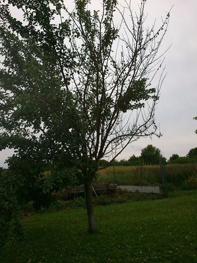 Domnívám se že jde o skvrnitost peckovin, houbovou chorobu. V příštím roce strom preventivně postříkejte přípravky Delan 700 VDG, Syllit 65, Talent 3-4 týdny po odkvětu a další postřik proveďte po 10-14 dnech. V současné době také proveďte ochranu některým z přípravků, aspoň zabráníte dalšímu šíření choroby. Také lze doporučit pozdně podzimní, předjarní a jarní ošetření měďnatými fungicidy. Snad se k tomuto problému ještě někdo vyjádří. Přeji pěkný a pohodový den. |