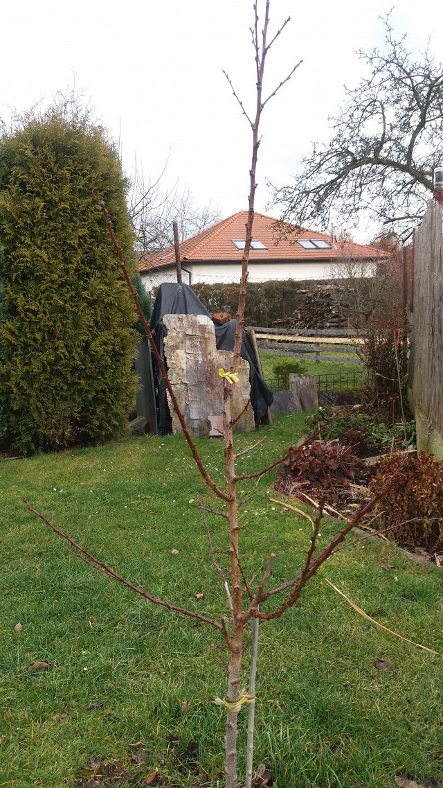 Zkraťte stromek asi 3-4 očka pod tím košťátkem (aby se terminál rovnal nad střed) a vystříhejte z koruny všechny ty suché čípky, které (nevím proč) tam jsou. No a pak upravte spodní patro větví, aby tyto sílily, v případě potřeby unesly i větší úrodu plodů v následujících letech. Doba rašení (u kvetoucích doba kvetení) je pro to ta nejlepší. |
