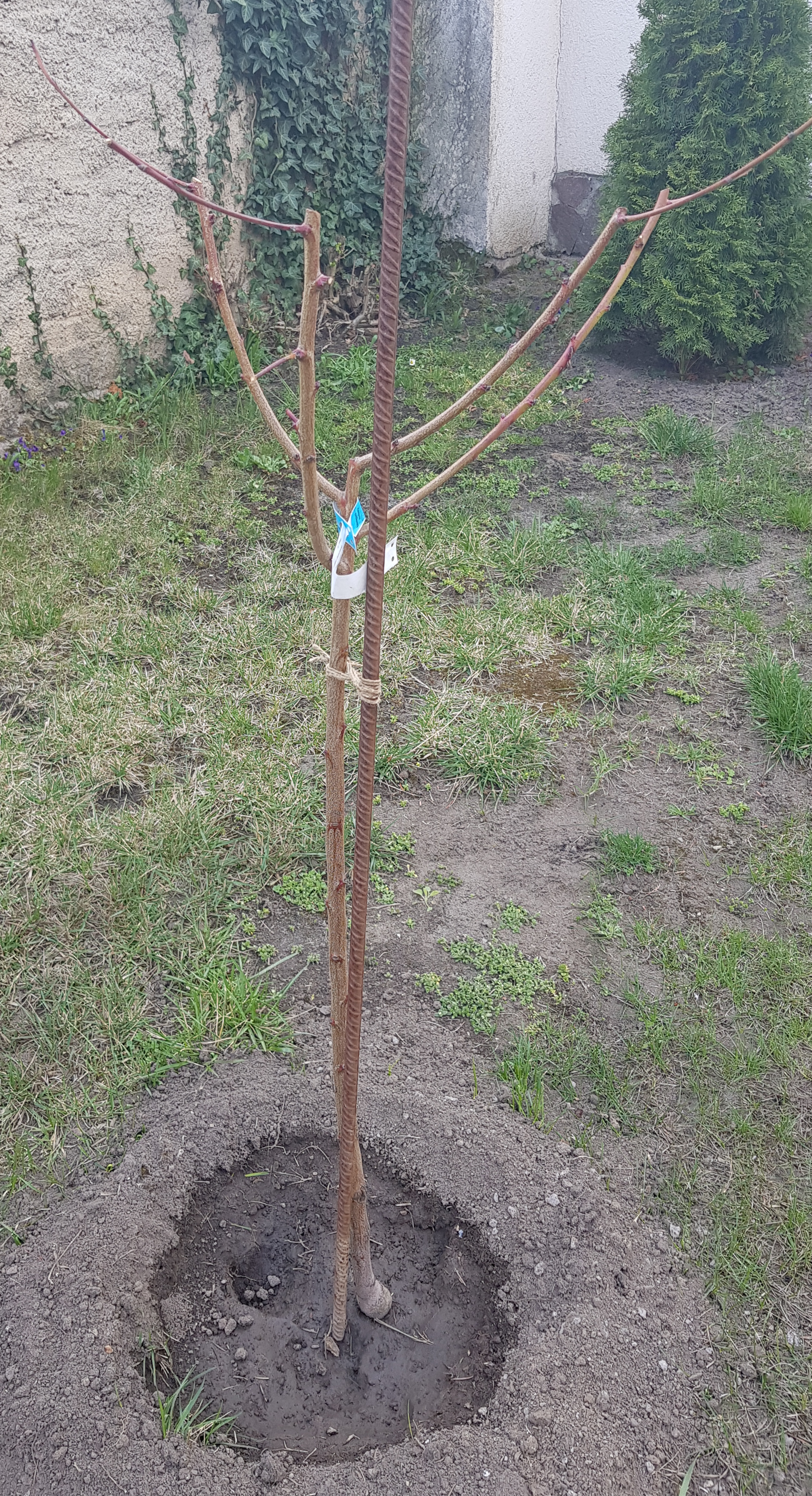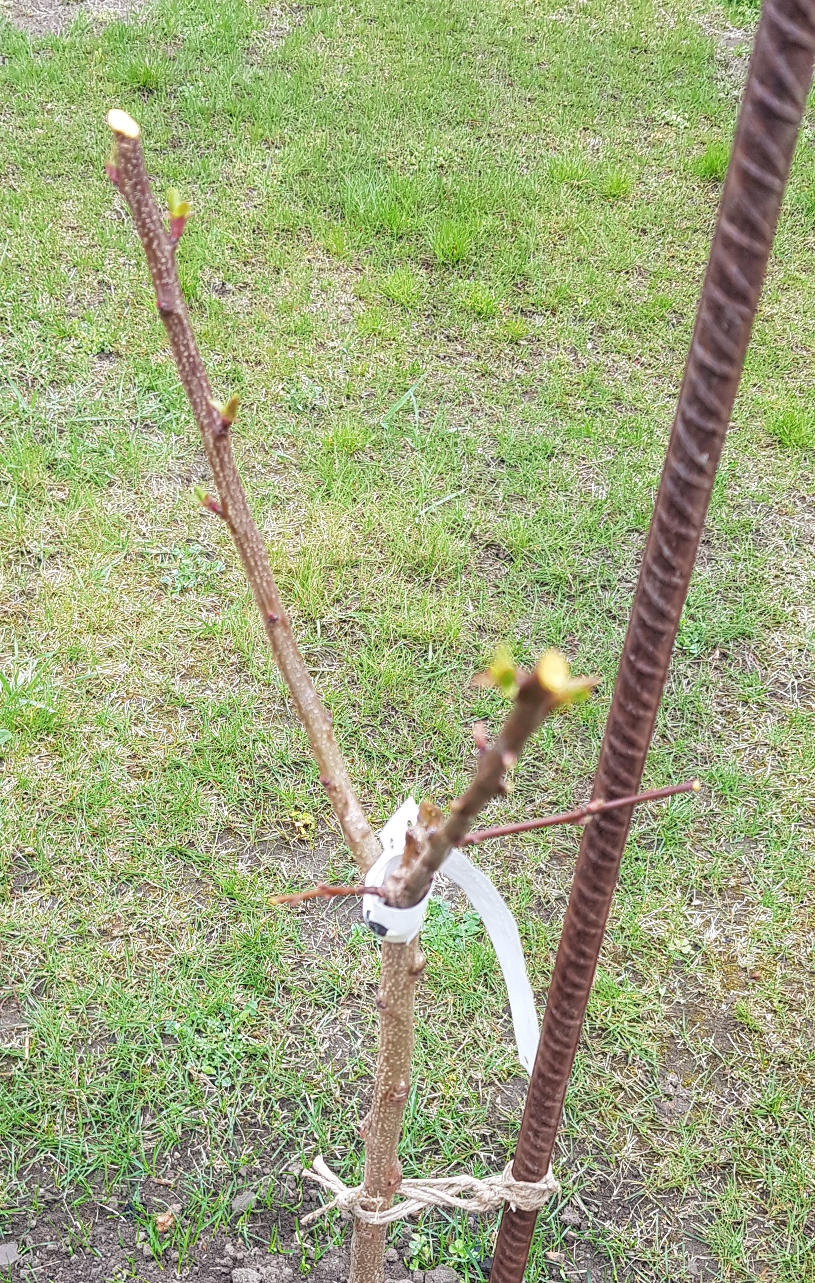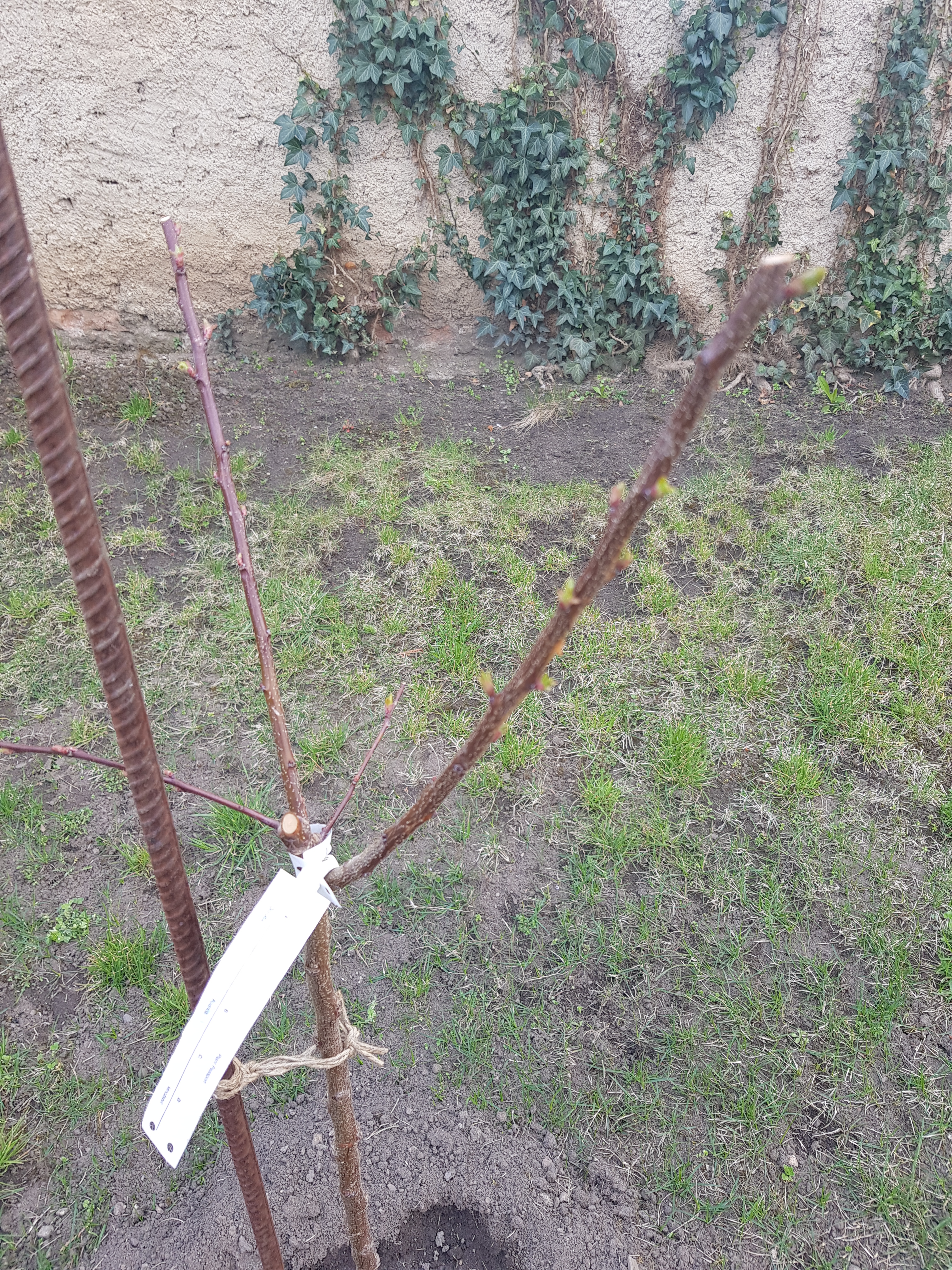 P. Jano, děkuju za další foto. Nezlobte se prosím na mě, ale Vaše broskvoň není zastřižena správně-ty kosterní větvičky mají být po výsadbě zakrácené-z pohledu laika brutálněji-daleko více -na 2-4 pupeny. Pokud by se tak stalo, tak by pravděpodobně narašení bylo zřetelnější. Koncový pupen-blízký střihu má být na spodní straně výhonu a směřovat ven, ranku je vhodné natřít např. štěp. voskem, stromovým balzámem či latexovou barvou. Snad se kovová tyč nedotýká kmínku-tam by hrozilo namrzání. |