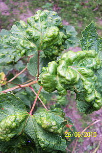 Prosím o radu, co dělat při výskytu kudrnatých listů rybízu. Obrázek přikládám. Děkuji Připojený obrázek: