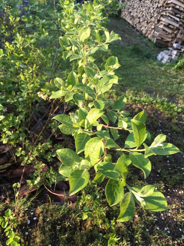 Dobrý den, druhým rokem pěstujeme kanadské borůvky. Máme 3 rostliny, 2 druhy stejné z Olomoucké Flóry a jednu rostlinu od místního prodejce. Připravil jsem borůvkám ideální podmínky vykopáním díry a zasypáním Xlitry rašeliny společně s hrabankou se smrkového lesa. Proti vysychání kořenů jsem rašelinu zasypal silnou vrstvou borové kůry. Proto mi nebylo vůbec divné že se jedné (té osamocené od místního prodejce) začalo tak dařit a už během loňského roku se krásně rozrostla a vytvořila dlouhé haluze. Letos z jara už mi začala být ale podezřelá :). Má úplně jiné listy a vůbec nešla do květu jako ostatní borůvky. A předevčírem přišla babička a říká mi "Co to tam u těch borůvek máš za keř". No a hned sem si to vyfotil a chci teda zjistit co to je zač.
