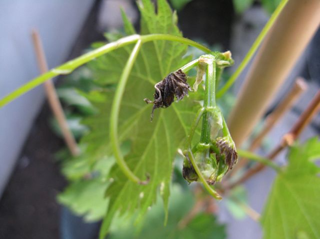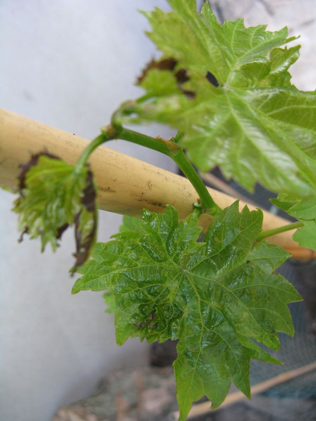 Dobrý den, všechny připojené obrázky i s ohledem na datum vložení nasvědčují na mrazové poškození. Réva typicky reaguje okamžitým zčernáním mladých listů a výhonů. K výraznému poškození došlo letos 18. 5. na Moravě hlavně na vinicích v údolích, mráz kolem -5 °C poničil řadu vinic. |