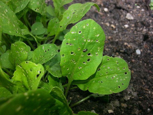 Broučci dřepčíci, hodně zalévat, do zálivky přidat trošku mýdla, zapíchat mezi rostliny lepové desky a živočichy často plašit-při útěku skočí na lep. |