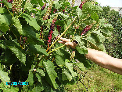 Líčidlo indiánské Phytolaca sp. Vytrvalá bylina s dužnatými kořeny. Barvířská rostlina (do šťáv, do vína,..), projímadlo při přímém konzumu. Každý je ale jinak vnímavý. Žerou ho rádi kosi, špačci, když jim projde trávícím traktem neztrácí na schopnosti barvit. Nechává to ošklivé skvrny na betonu, kamenném obložení i na leštěném mramoru. |
