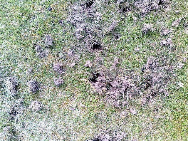 Myslím, že ty díry jsou od myší, na podzim máme podobné, když je žně vyženou z polí |