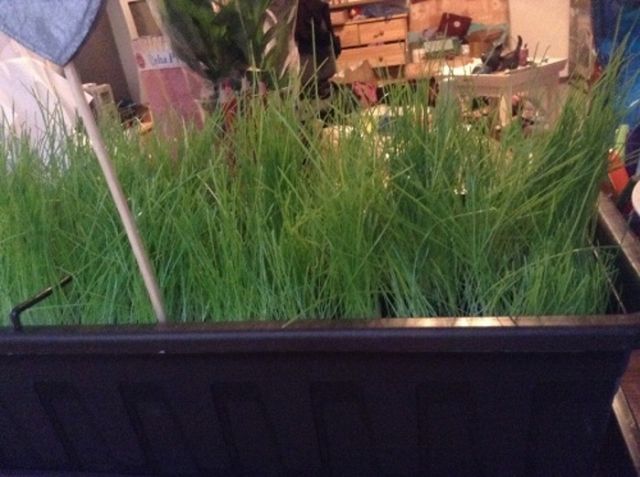 Mladé rostlinky jsou opravdu jemnější než starší porosty. Přesuňte "trávník" ven, na balkon, za okno. Ať se otuží, zakoření, začne odnožovat - bude pevnější. Ostříhejte ho na cca 4 cm a jak naroste na dvojnásobek, zase ho opakovaně sestříhněte, nebo ho zkracujte postupně, jak budete krmit. Nevím na jak dlouho mu to stačí, nenechávejte rostliny přerůst přes 10 cm. Osení obyčejně naroste za 14 dnů, první listy obilovin jsou mohutnější. Naroste a pak se krmí (likviduje), trávník je dlouhodobější záležitost, v bytových podmínkách . |