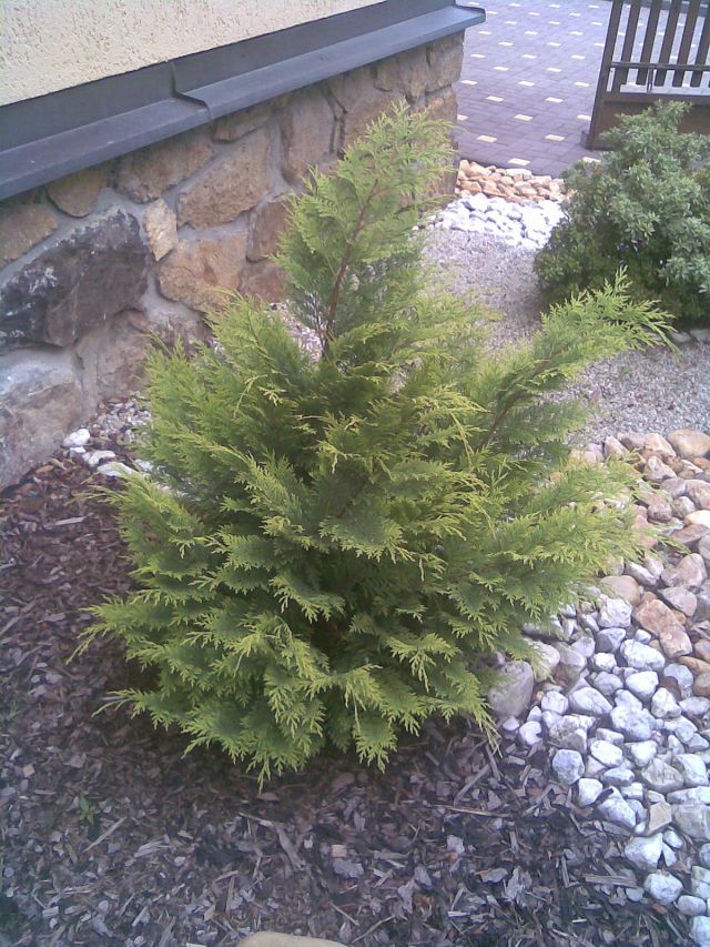Dobrý den, z vaší fotografie není přesně možné určit dřevinu, ale zdá se, že se jedná o Juniperus chinensis pfitzeriana aurea (nemá terminál a větve jsou rozkladité do stran) Pokud se týká o jeho velikost bývá v dospělosti - tj. od cca 15 let v rozměrech 2 x 2 m (výška x šířka). To zda na něj bude dost místa ponechám na vás. |