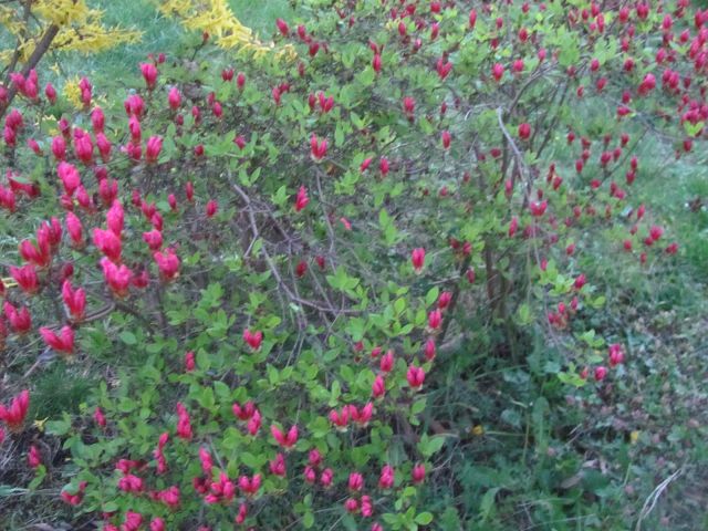 Vypadá to na opadavý rododendron - azalku. Je to dost objemný keř a neuspořádaný. Chtěl by před přesazením proříznout Přesadit by šel, ale raději po přípravě. |
