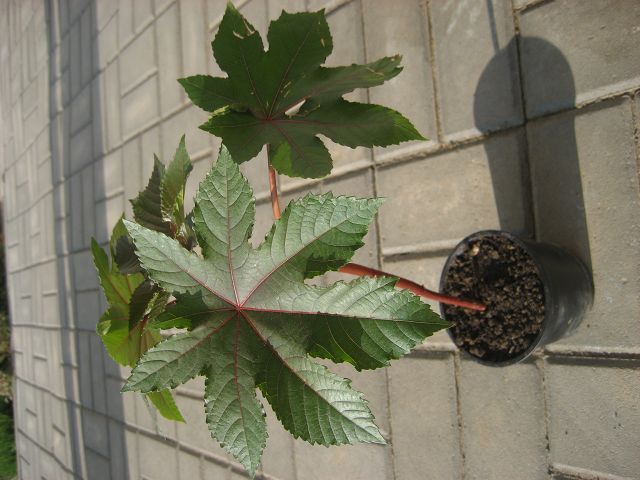 Je to skočec, Ricinus communis. Nesnáší mráz, semena jsou jedovatá. |