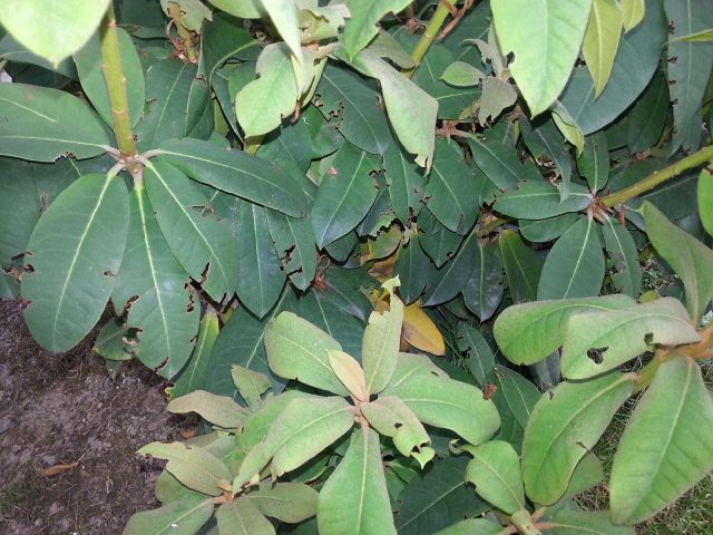 Oválná vykousaná místa zůstávají po lalokonosci, tohle vypadá na něco jiného, na nějako housenku, možná osenici, možná jinou. Nejspíše vylézá až večer nebo v noci. Zkuste se na rostlinu podívats baterkou, jestli na ní něco najdete. |