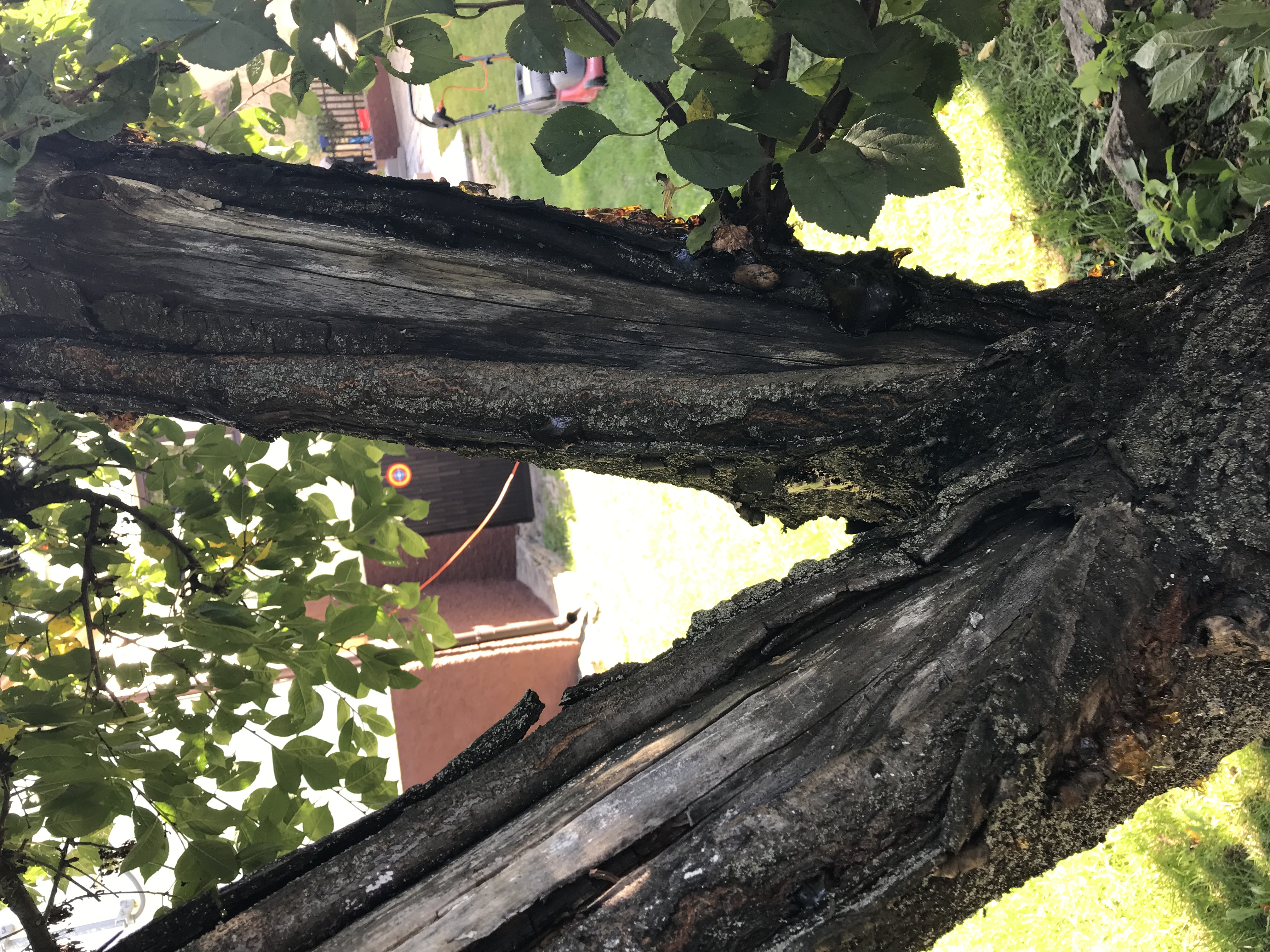 Pokud chcete tuhle višeň zachránit, vezměte z ní v zimě rouby, sežeňte si nějakou podnož - ptáčnici a naroubujte si ji, nebo se s někým dohodněte. Není sice vidět, jak vypadá strom, ale podle mě bude v dosti krátké době svému okolí nebezpečný, může ho rozlámat, zničit silný vítr. |