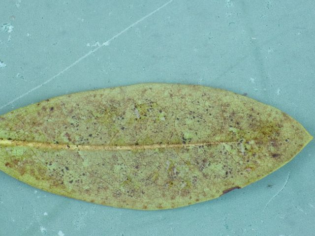 Může to být sviluška, třásněnka, "lesklé kapičky trusu a místy ztvrdlé skvrny" dělá síťnatka rododendronová. Podívejte se do speciální prodejny pro zahrádkáře, nebo i do drogerie, hledejte přípravek, který hubí širší spektrum škůdců - např. Careo, Decis Mega, |