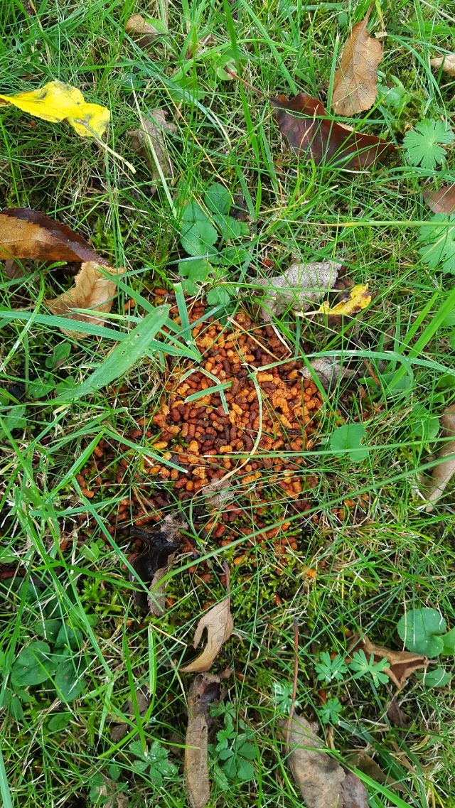 na zahradě se mi již druhým rokem objevila pod jabloní hromádka něčeho, co nevím co by mohlo být. Malé granulky, nesmrdí, lehce se rozpadnou. Prosím o názor co to je.