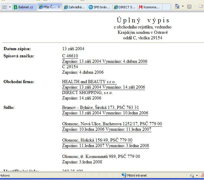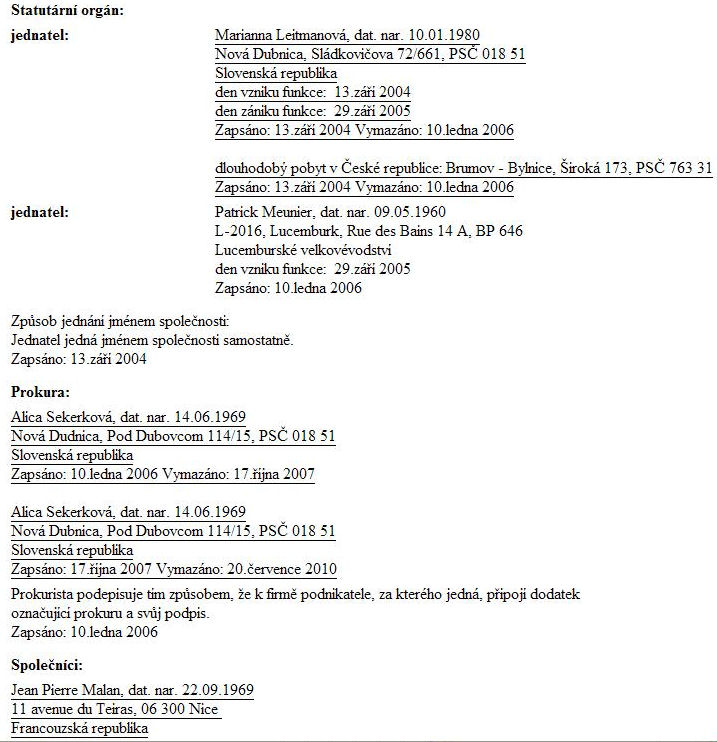 Přikládám soubory v uvedené věci, mapu hlavního sídla v Praze, kde by měli tito géniové jahod a hubnutí sídlit a kopie z rejstříku firem u dvou z nich, Sekerovi(prokury u všech těchto firem) se mi zdají být bílými koni, nevěříte?