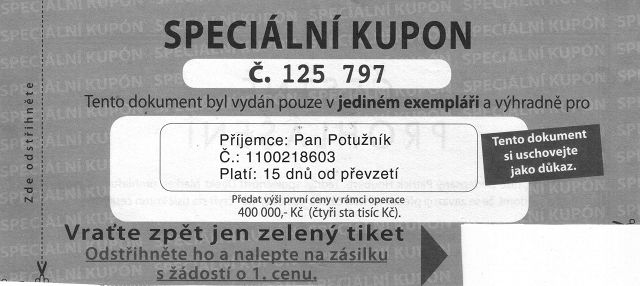 které jsem údajně vyhrál na jedinečné číslo 1100169276 též s blůahoúpřáním gen. ředitele. Zřejmě jsme naběhli podvodníkům na které není ani telefoní spojení.
