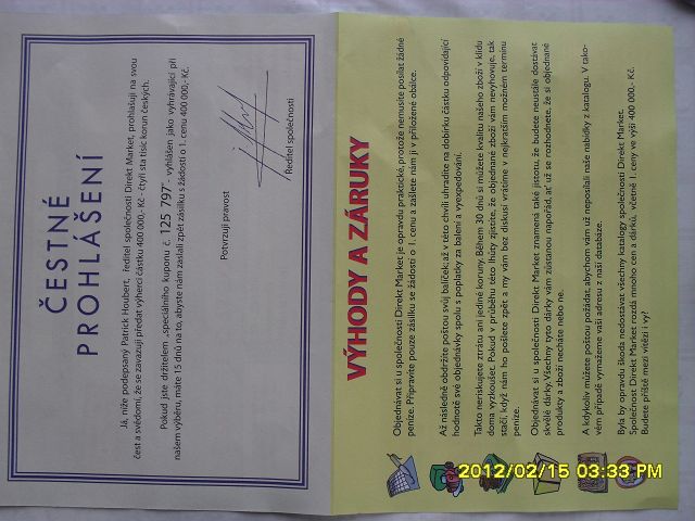 Připojený obrázek: Podvodné jednání firmy DIREKT MARKET s.r.o. Valašské Klobouky?