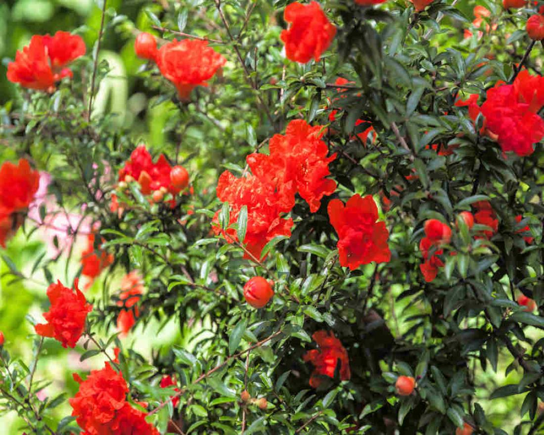 Granátové jablko, marhaník či Evino jablko – Punica granatum – patří mezi nejstarší kultivované rostliny světa. Jeho jméno vzniklo podle podobnosti se zbraní i drahokamem, neboť semeno obalené rudým míškem drahokam svou barvou skutečně připomíná. Původní vlastí granátovníku je ostrov Sokotra, odkud se rozšířil do celého světa. Je to opadavý keř, který upoutá ohnivě červenými květy a následně rudými plody obsahujícími stovky semen. Právě kvůli vysokému počtu semen se stal u mnoha národů symbolem plodnosti a úrodnosti, zatímco podle rudé barvy krve je symbolem života a životodárné energie.