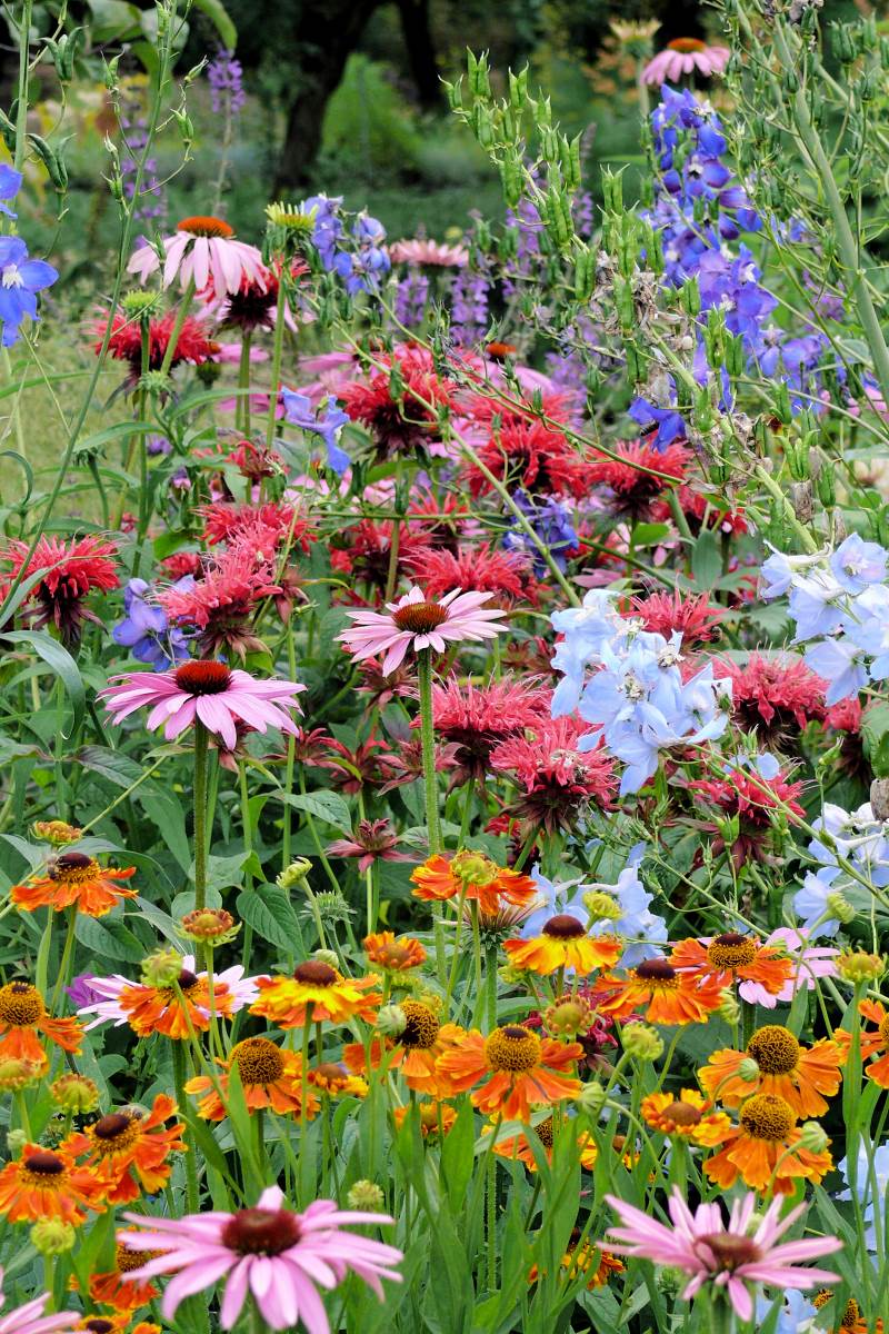Ke klasickým v létě kvetoucím trvalkám patří především původem severoamerické druhy, jako jsou zápleváky (Helenium), plamenka latnatá (Phlox paniculata), zavinutka (odrůdy od Monarda didyma a M. fistulosa), třapatky (Rudbeckia fulgida), třapatkovky (Echinacea purpurea), rozrazilovce (Veronicastrum virginicum) či janeby (Heliopsis). Tyto rostliny nakvétají obvykle od počátku července a kvetou až do srpna. Spojují je také víceméně podobné nároky na stanoviště, které má být v ideálním případě slunné či pouze částečně přistíněné (toulavý stín).