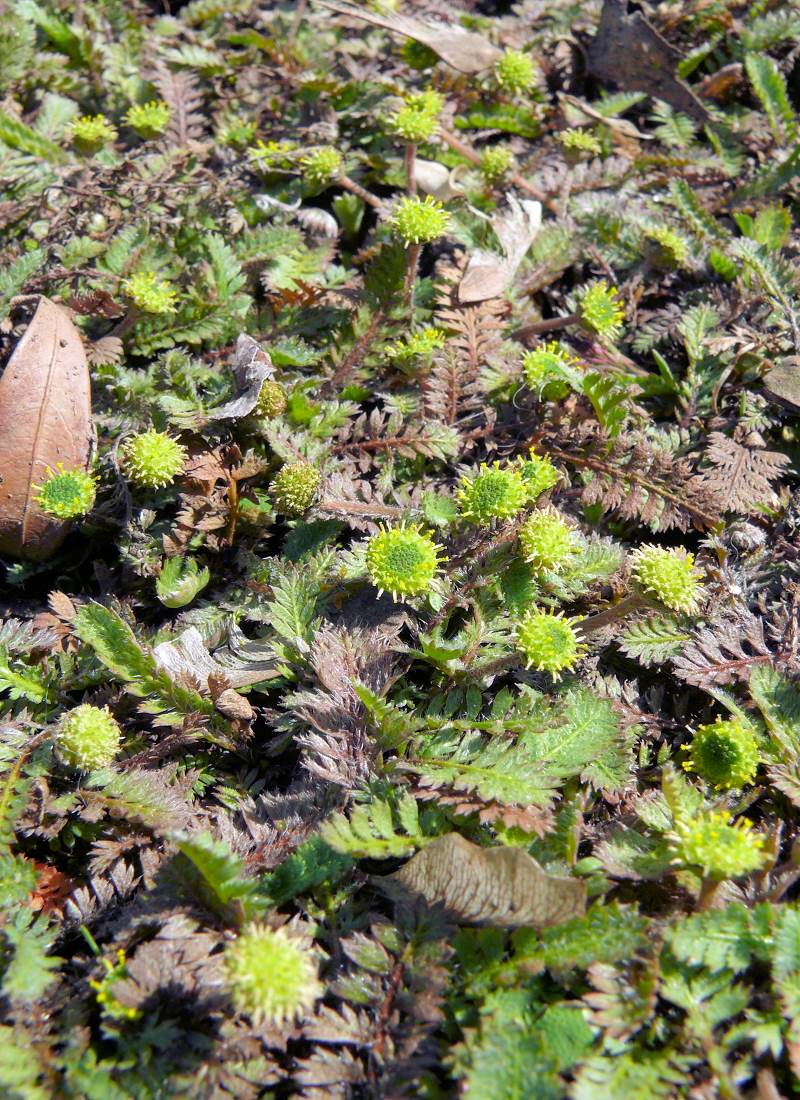 Mezi nízké půdopokryvné trvalky patří mechovec (Cotula), nejčastěji C. squalida původem z Nového Zélandu. Ozdobou jsou hlavně listy, květy jsou nenápadné. Porost měří 3–5 cm. Mechovec roste nejlépe v polostínu, ale zvládne i plné slunce. Vyžaduje propustnou, stále mírně vlhkou půdu. Místo musí být dokonale odplevelené, protože mechovec není tak konkurenčně schopný jako ostatní zmíněné druhy.