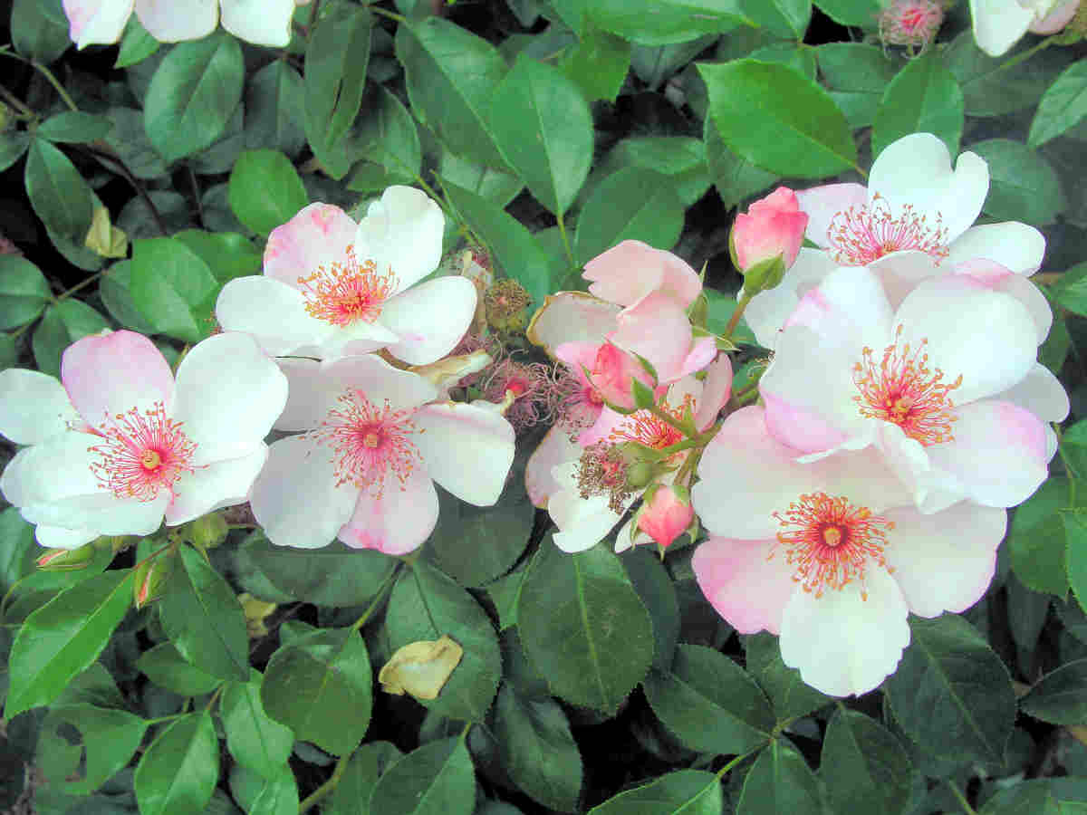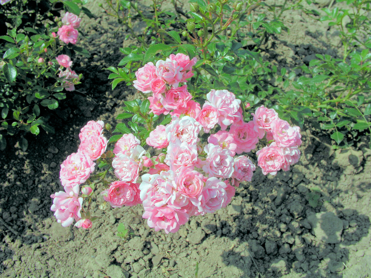 Tyto růže tvoří vzpřímené keříky v květenstvích s desítkami květů o velikosti  jen 2 až 5 cm (např. Margo Koster, The Fairy). Růže ze skupiny floribund (Pussta) se řízkovat dají většinou také. Tady je v květenství 4 až 9 květů, jejich velikost je 6 až 9 cm.