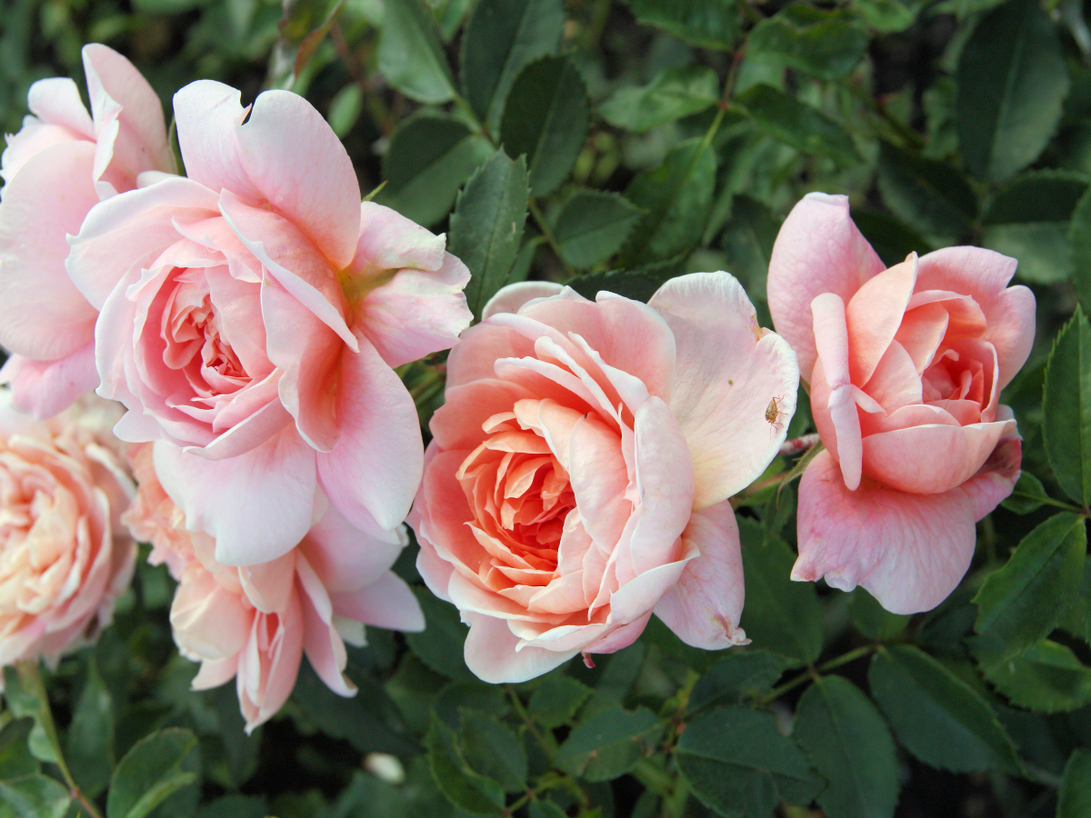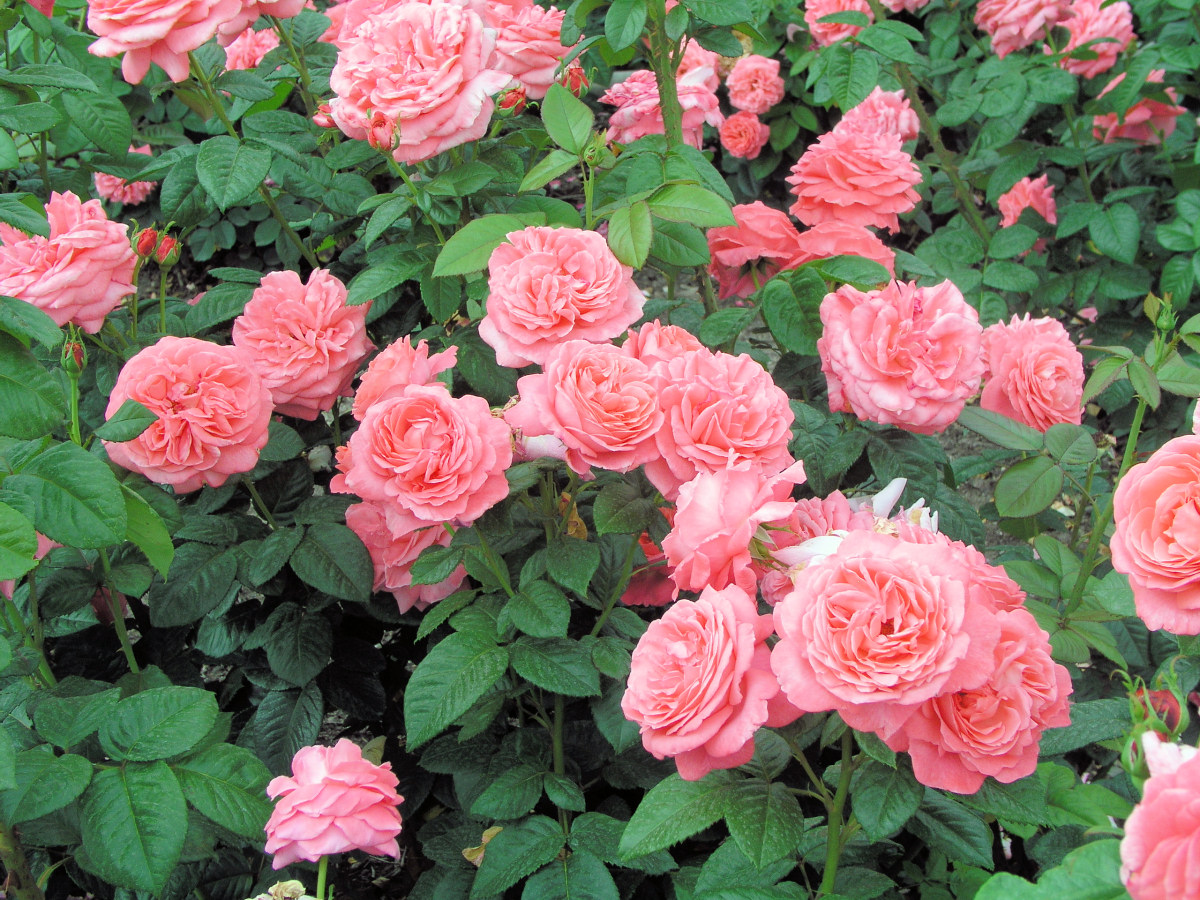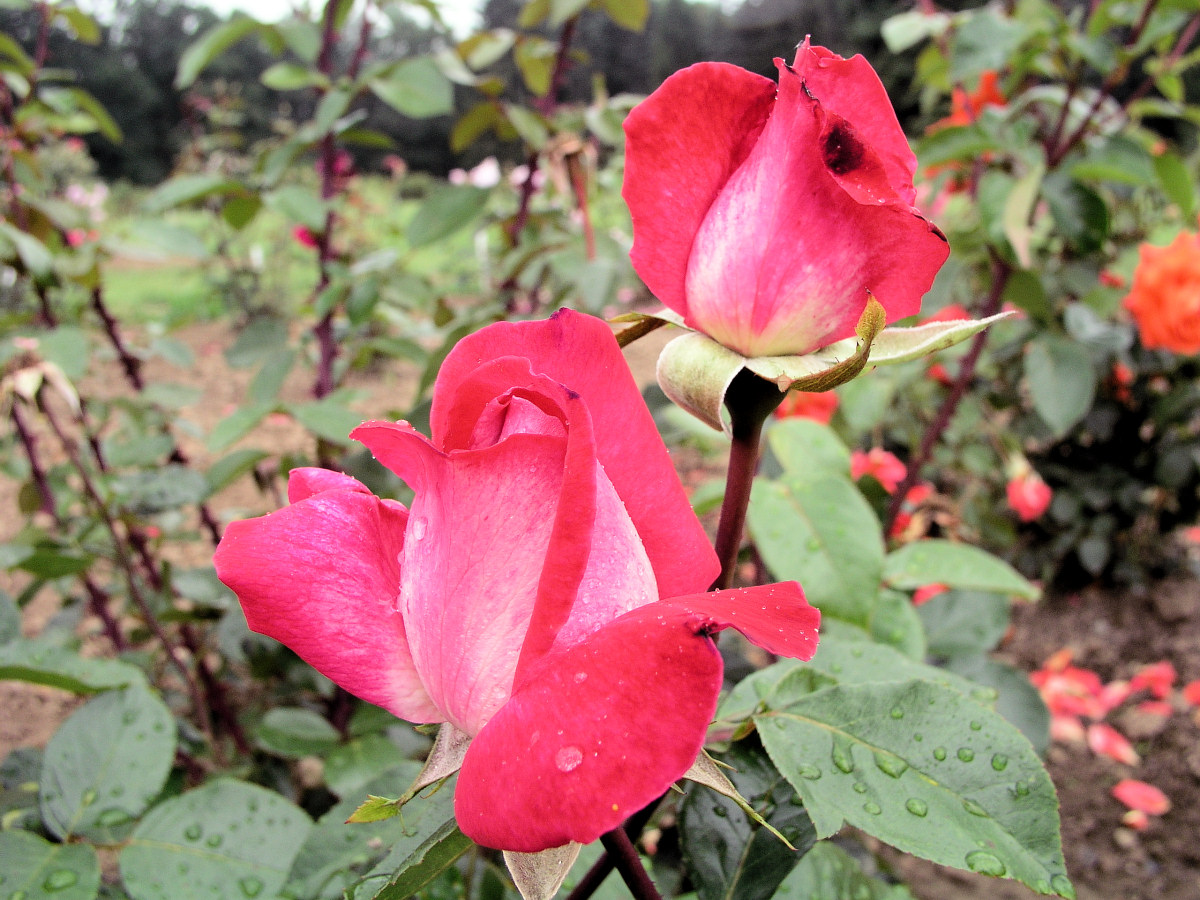 Velmi různá situace je pak u mohutných keřů sadových růží (Colette, Koré, Lavender Dream, Milevsko, Märchenland).