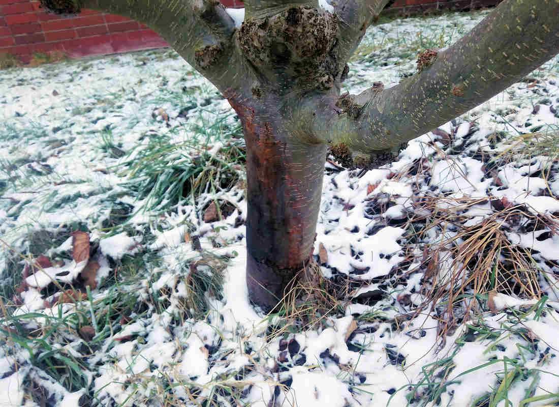Když kmen jabloně černá: je to korová nekróza?